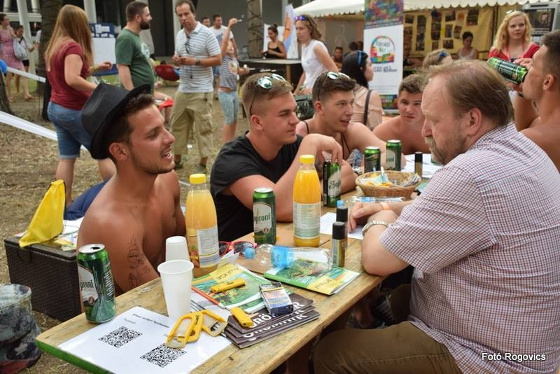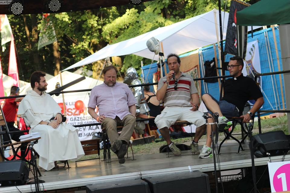 – Akárcsak a kocsmai alkalmaink során, a fesztiválon is beszélgettünk a jó és a rossz kérdésköréről, a szexualitásról, a függőségekről, a gazda(g)ság, a pénz, a politika és a hatalom viszonyáról; valamint a halál előtti és utáni élet kérdései is terítékre kerültek. Tartottunk három pódiumbeszélgetést a Civil Faluhoz közeli színpadon, ugyanakkor azt még inkább bátorítottuk, hogy a reggeltől estig üzemelő sátrunkhoz betérő fesztiválozók kisebb csoportokban vagy négyszemközt, egy-egy sör mellett valamelyik pappal vagy lelkésszel vagy épp az önkéntesekkel beszélgessenek. Volt, aki a szakmája etikai vonatkozásairól kérdezett; volt, akit a párkeresés témaköre izgatott leginkább; voltak kötetlenebb és persze bizalmas beszélgetések is. A kérdezők lehet, hogy szégyenlősök voltak, de az igazán meredek felvetéseket inkább privátban tették fel papjainknak, például a cölibátus személyes megélésével kapcsolatban. Emellett látogatóink kifejezetten élvezték a Tankcsapda dalszöveg-részleteinek és az azokkal összefüggésbe hozható bibliai részeknek az összepárosítását és a többi kvízt, játékot.
